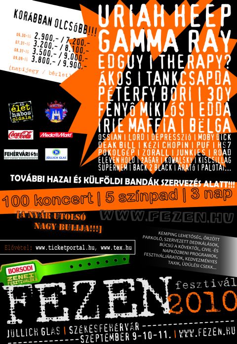 A színpadok beosztását és a jegyinformációt megtaláljátok a fesztivál honlapján, a http://www.fezen.hu/ -n.
