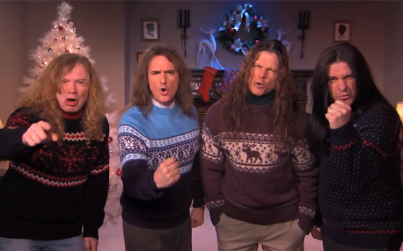 Nem tudjuk hová tenni a látottakat. Személy szerint én mikor megláttam reggel ezt a videót percekig röhögtem. A Dave Mustaine vezette Megadeth a Jimmy Kimmel Live vendége volt, ahol amellett, hogy eljátszották a Kingmaker című dalukat ( és még jó pár szerzeményt), egy álreklám keretében bemutatták “legújabb lemezüket a “Thrashing Through The Snow: A Very Megadeth Christmas-t”. Természetesen nincs ilyen lemez, ez csak egy poénos kis ajándék a csapattól, az indie-rock egyik jeles képviselőjének Jenny Lewisnak a vendégeskedésével.