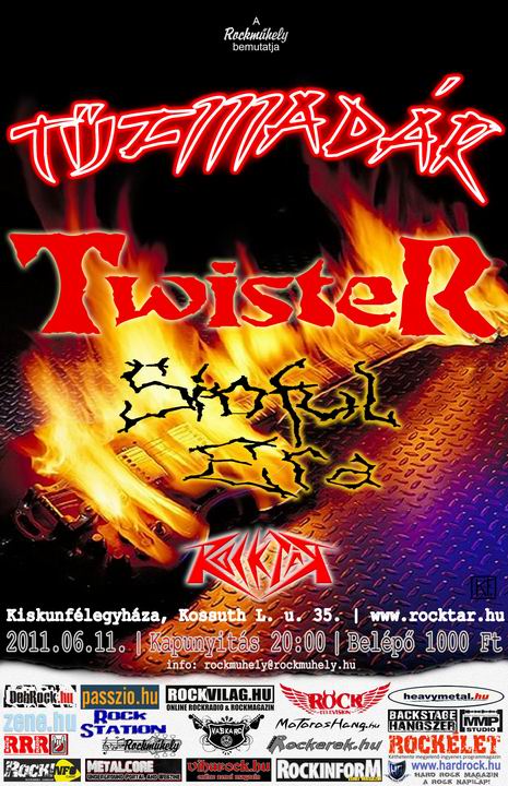 Ha idén nem jutsz el a Metalfestre, két fellépővel biztosan találkozhatsz június 11-én a kiskunfélegyházi Rocktárban. Ha mégis, akkor pedig gyere és duplázz. Érdemes. A Tűzmadár zenekarnak nemrég jelent meg harmadik albuma — Álmok címmel — a Hammerwold magazin mellékleteként. A Twister az első lemezét hasonlóképpen fogja rászabadítani több ezer metálosra. Az ő lemezük Az ördög lánya címet viseli majd és a július-augusztusi Hammerwold mellékleteként találjátok majd meg. A helyi erőt a Sinful Era zenekar fogja képviselni. A kecskeméti zenekar gótikus death black metalt játszik és idén februárban jelent meg első EP-jük.