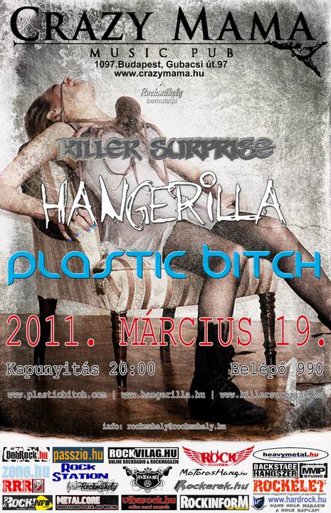 Akik ismerik a zenekarokat, azoknak egyértelműen ott a helye március 19–én a Crazy Mama Music Pubban (Budapest, Gubacsi u. 97.), akik pedig nem hallották még egyik csapatot sem, azért jöjjenek el, mert ebben a konstellációban nem minden pénteken lehet látni ezt a hármast. Érdemes “előtanulmányokat” folytatni a csapatok munkásságát illetően, ugyanis a Plastic Bitch és a Killer Surprise ingyen letöltésre kínálja legújabb lemezét, a HanGerilla pedig online streamre a lemezelőzetest.