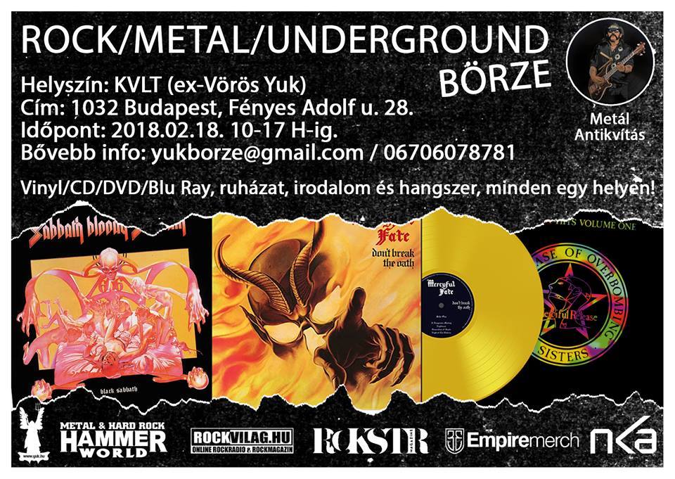 Új év, új kezdet, vagy esetleg valaminek a folytatása. Február 18-án az óbudai székhelyű Supersonic – Blue Hell & KVLT Klubban újra megrendezésre kerül a 2016. szeptemberben elindított, Rock/Metál Underground börze. Mivel én is nagy lemezgyűjtőnek tartom magam, így persze egyetlen alkalommal sem hagytam ki az akkor még a Dürer Kertben megtartott börzéket. Személyesen azért örültem ennek a kezdeményezésnek, mert a többi lemezbörzével ellentétben itt kizárólag kedvenc műfajaim közül turkálhattam, nem kellett „átnyálaznom” a más zenei stílusba tartozók hanghordozóit. Sajnos azonban nem tartott sokáig, mert a Király utcai LemezPiaccal egybeolvadt a Rock/Metal Undergrond börze. Vagy mi is volt valójában a fuzionálás hátterében?